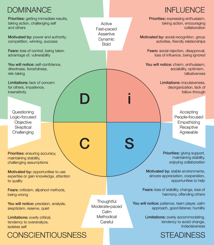 - 影響型(Influence, i 風格):擅長互動與激勵他人,喜歡協作。